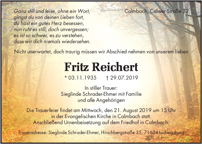 †29.07.2019, Ruhestätte: Friedhof Calmbach