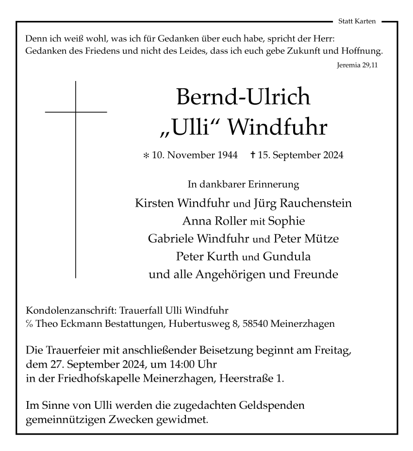 in diesen Tagen fühlen wir mit Ihnen und wünschen Ihnen von Herzen, dass Sie aus den glücklichen Erinnerungen Kraft schöpfen, um positiv in die Zukunft zu gehen. Diese Gedenkseite möge Ihnen dabei helfen, Ihre Trauer zu teilen und das Andenken gemeinsam wachzuhalten.
