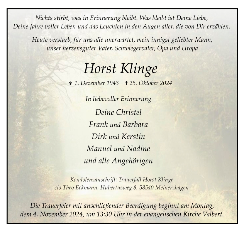 in diesen Tagen fühlen wir mit Ihnen und wünschen Ihnen von Herzen, dass Sie aus den glücklichen Erinnerungen Kraft schöpfen, um positiv in die Zukunft zu gehen. Diese Gedenkseite möge Ihnen dabei helfen, Ihre Trauer zu teilen und das Andenken gemeinsam wachzuhalten.
