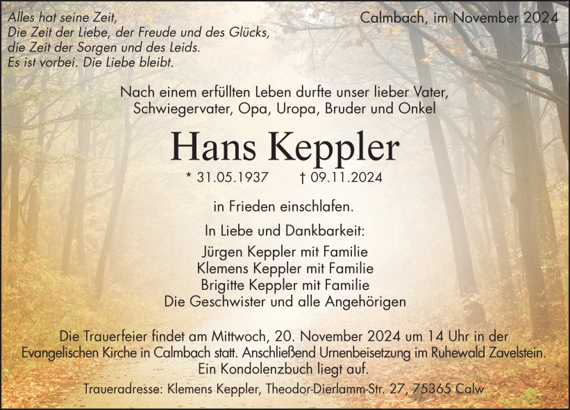 †09.11.2024, Ruhestätte: Ruhewald Zavelstein