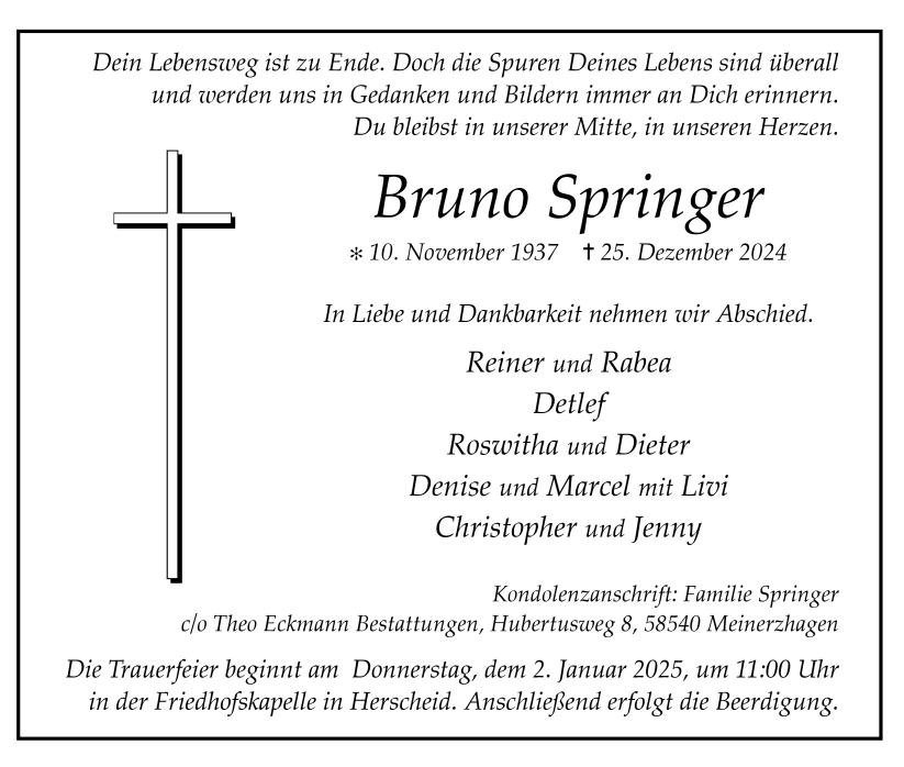 Theo Eckmann Bestattungen, am 30.12.2024