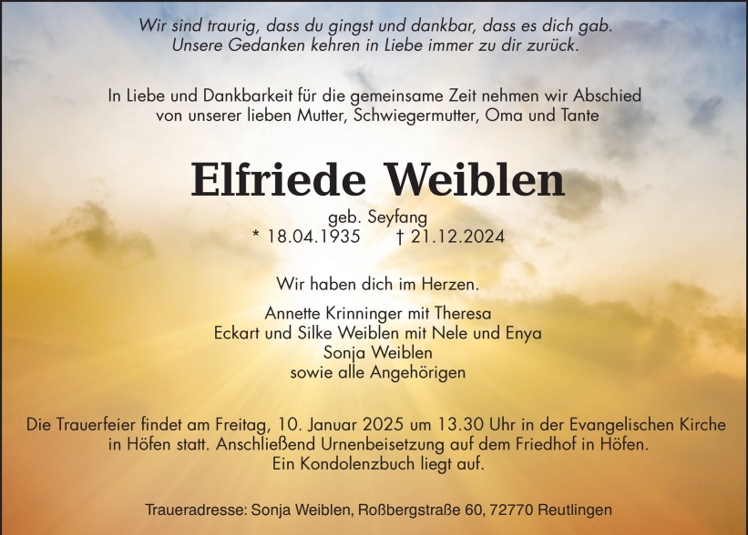 †21.12.2024, Ruhestätte: Friedhof Höfen an der Enz