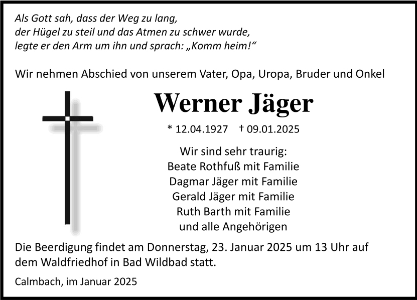 †09.01.2025, Ruhestätte: Waldfriedhof Bad Wildbad