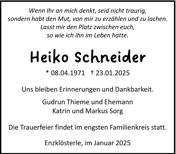†23.01.2025, Ruhestätte: Friedhof Enzklösterle