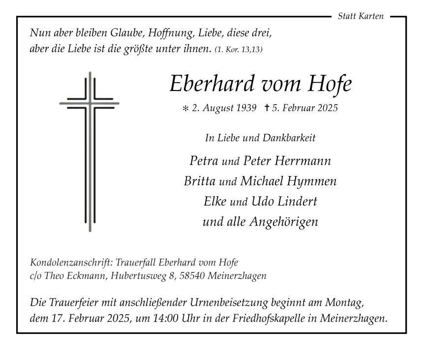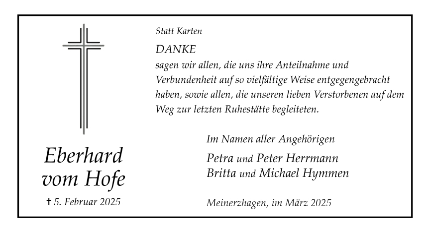 in diesen Tagen fühlen wir mit Ihnen und wünschen Ihnen von Herzen, dass Sie aus den glücklichen Erinnerungen Kraft schöpfen, um positiv in die Zukunft zu gehen. Diese Gedenkseite möge Ihnen dabei helfen, Ihre Trauer zu teilen und das Andenken gemeinsam wachzuhalten.