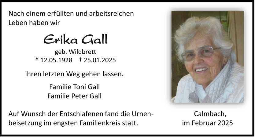 †25.01.2025, Ruhestätte: Waldfriedhof Bad Wildbad
