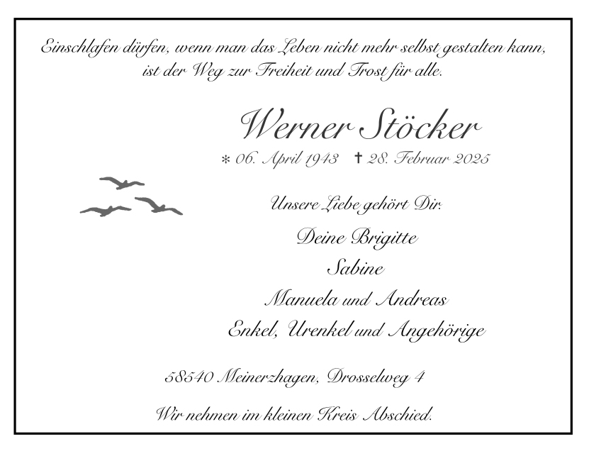 in diesen Tagen fühlen wir mit Ihnen und wünschen Ihnen von Herzen, dass Sie aus den glücklichen Erinnerungen Kraft schöpfen, um positiv in die Zukunft zu gehen. Diese Gedenkseite möge Ihnen dabei helfen, Ihre Trauer zu teilen und das Andenken gemeinsam wachzuhalten.