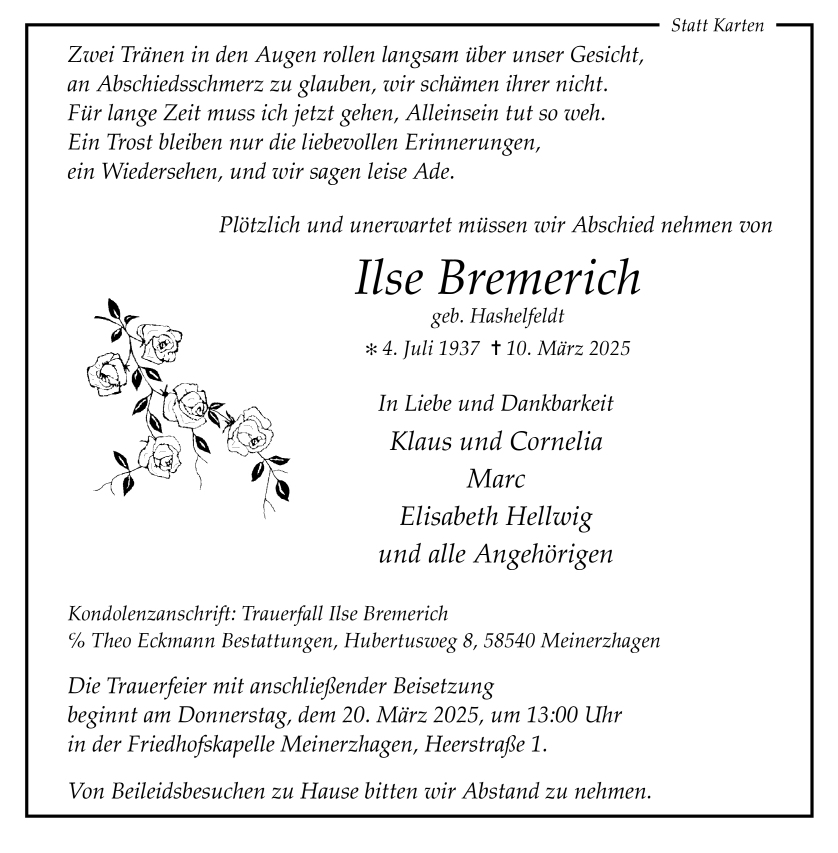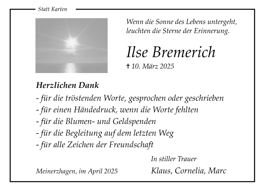 in diesen Tagen fühlen wir mit Ihnen und wünschen Ihnen von Herzen, dass Sie aus den glücklichen Erinnerungen Kraft schöpfen, um positiv in die Zukunft zu gehen. Diese Gedenkseite möge Ihnen dabei helfen, Ihre Trauer zu teilen und das Andenken gemeinsam wachzuhalten.