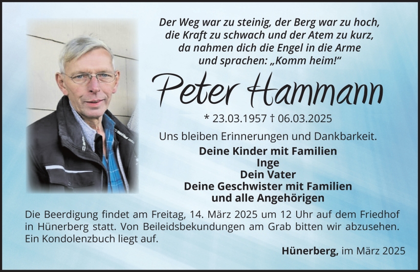 †06.03.2025, Ruhestätte: Friedhof Hünerberg