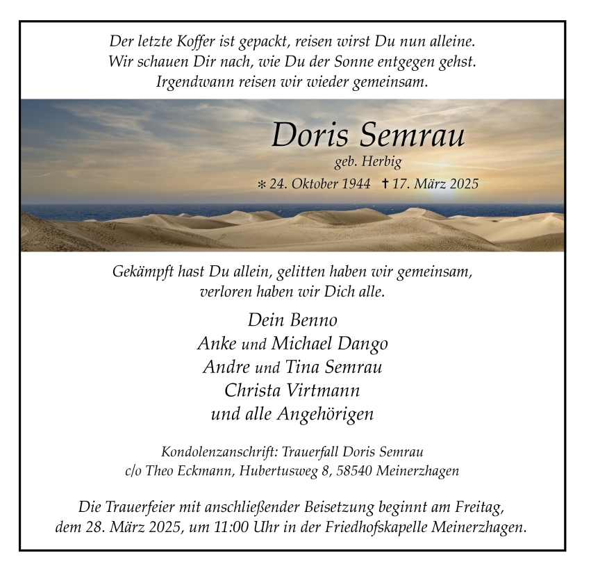 in diesen Tagen fühlen wir mit Ihnen und wünschen Ihnen von Herzen, dass Sie aus den glücklichen Erinnerungen Kraft schöpfen, um positiv in die Zukunft zu gehen. Diese Gedenkseite möge Ihnen dabei helfen, Ihre Trauer zu teilen und das Andenken gemeinsam wachzuhalten.
