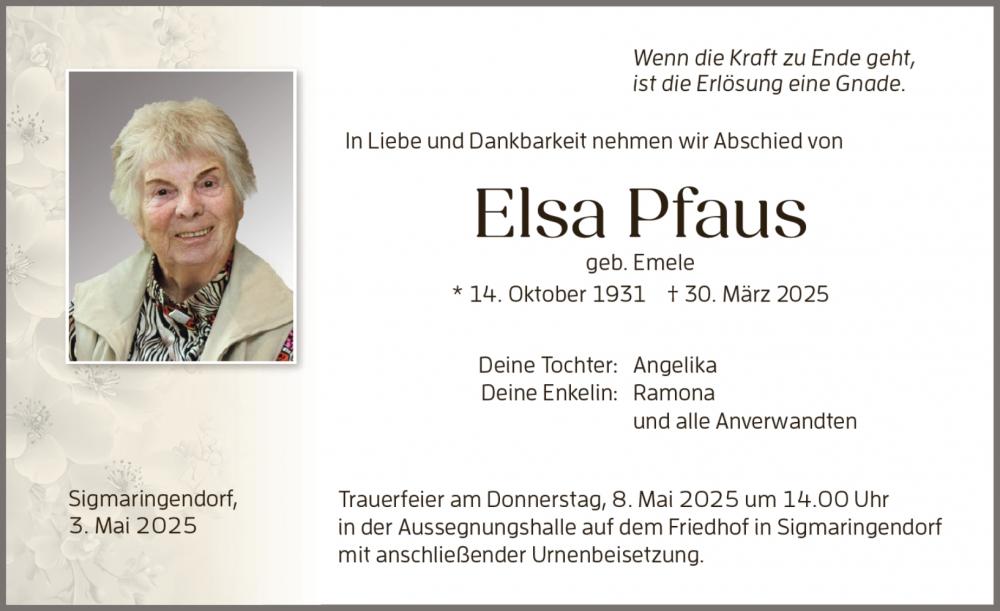 Trauerfeier am Donnerstag, 8. Mai 2025 um 14.00 Uhr in der Aussegnungshalle auf dem Friedhof in Sigmaringendorf mit anschließender Urnenbeisetzung.
