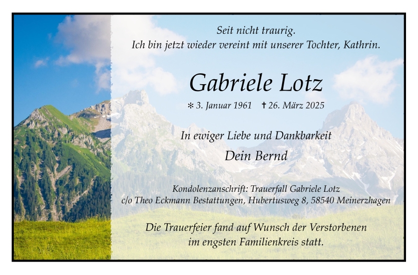 in diesen Tagen fühlen wir mit Ihnen und wünschen Ihnen von Herzen, dass Sie aus den glücklichen Erinnerungen Kraft schöpfen, um positiv in die Zukunft zu gehen. Diese Gedenkseite möge Ihnen dabei helfen, Ihre Trauer zu teilen und das Andenken gemeinsam wachzuhalten.