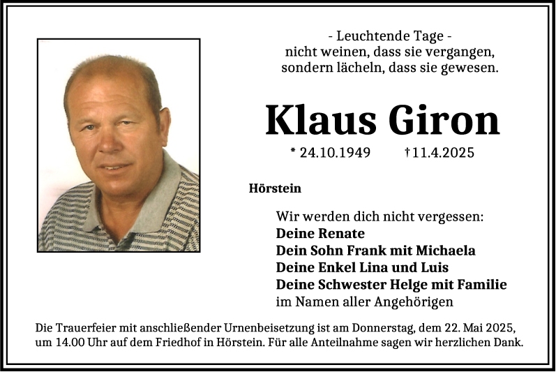 Gertrud und Herbert Giron Herzliche Anteilnahme