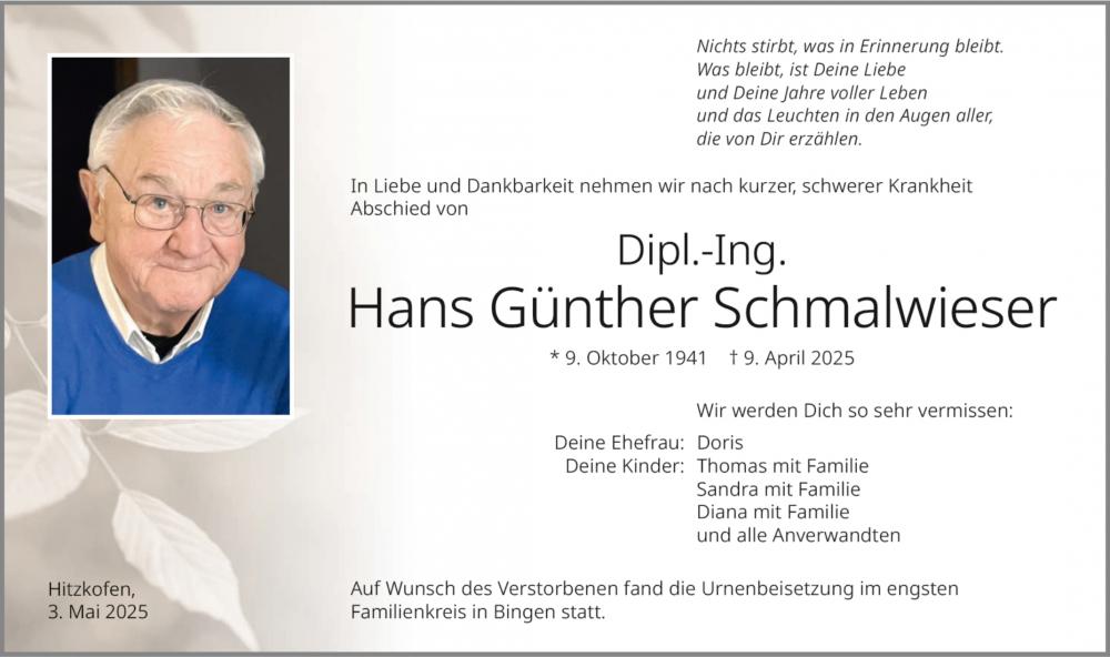 Auf Wunsch des Verstorbenen fand die Urnenbeisetzung im engsten Familienkreis auf dem Friedhof in Bingen statt.