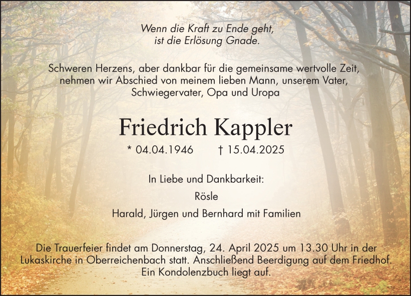 †15.04.2025, Ruhestätte: Friedhof Oberreichenbach