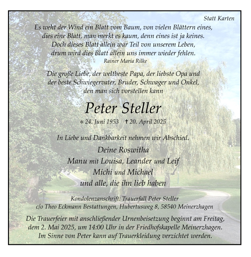 Theo Eckmann Bestattungen, am 25.04.2025