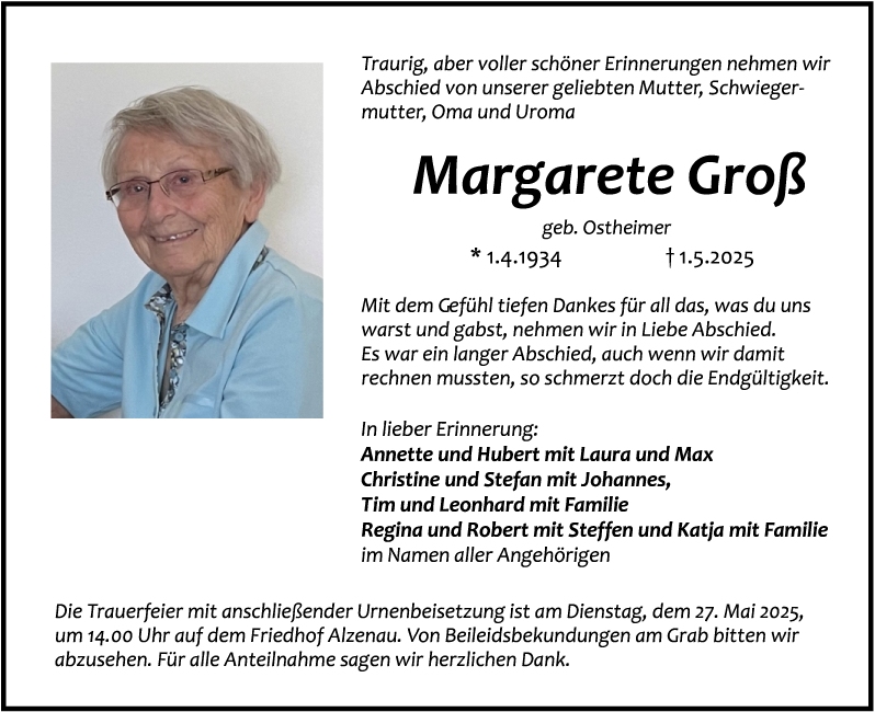 Unser herzliches Beileid: Heidi Walli, Catrin und Julia