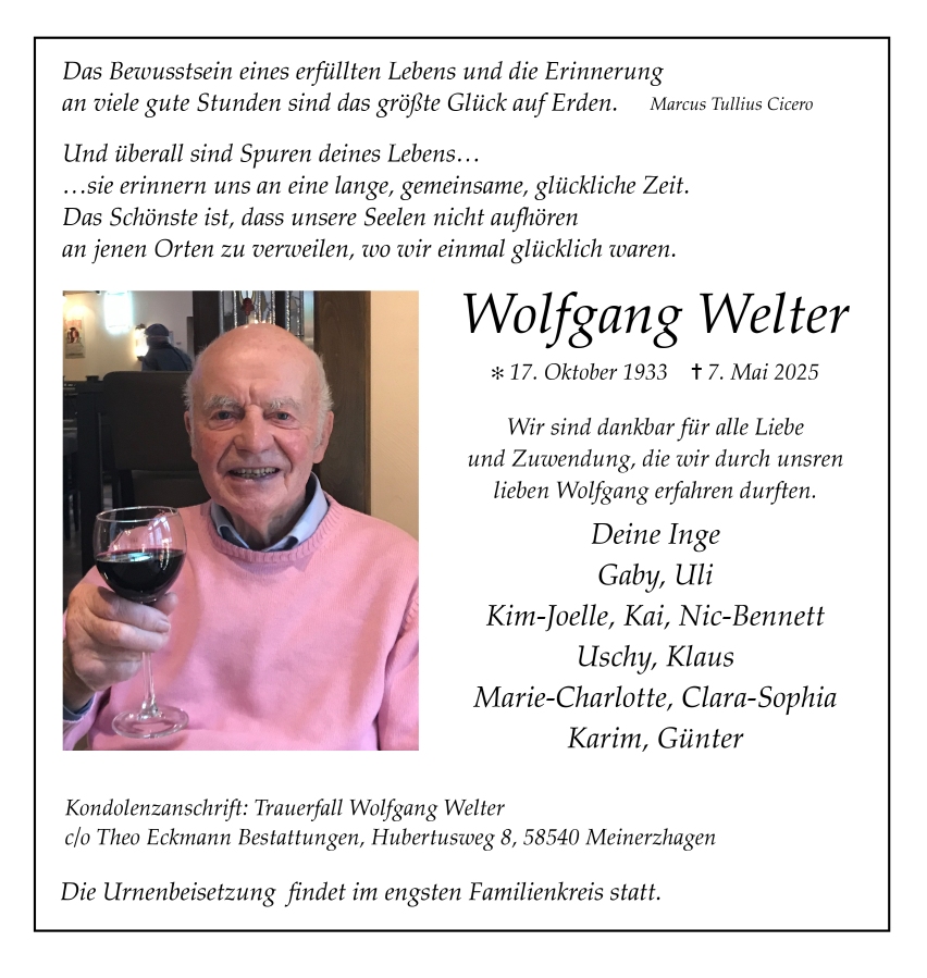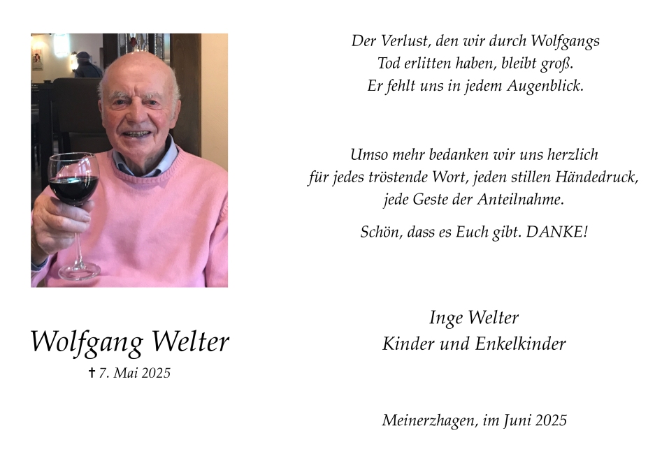 in diesen Tagen fühlen wir mit Ihnen und wünschen Ihnen von Herzen, dass Sie aus den glücklichen Erinnerungen Kraft schöpfen, um positiv in die Zukunft zu gehen. Diese Gedenkseite möge Ihnen dabei helfen, Ihre Trauer zu teilen und das Andenken gemeinsam wachzuhalten.