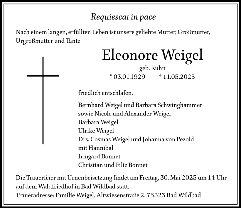 †11.05.2025, Ruhestätte: Waldfriedhof Bad Wildbad