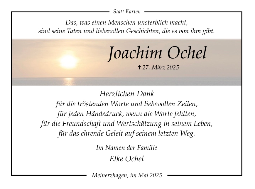 in diesen Tagen fühlen wir mit Ihnen und wünschen Ihnen von Herzen, dass Sie aus den glücklichen Erinnerungen Kraft schöpfen, um positiv in die Zukunft zu gehen. Diese Gedenkseite möge Ihnen dabei helfen, Ihre Trauer zu teilen und das Andenken gemeinsam wachzuhalten.
