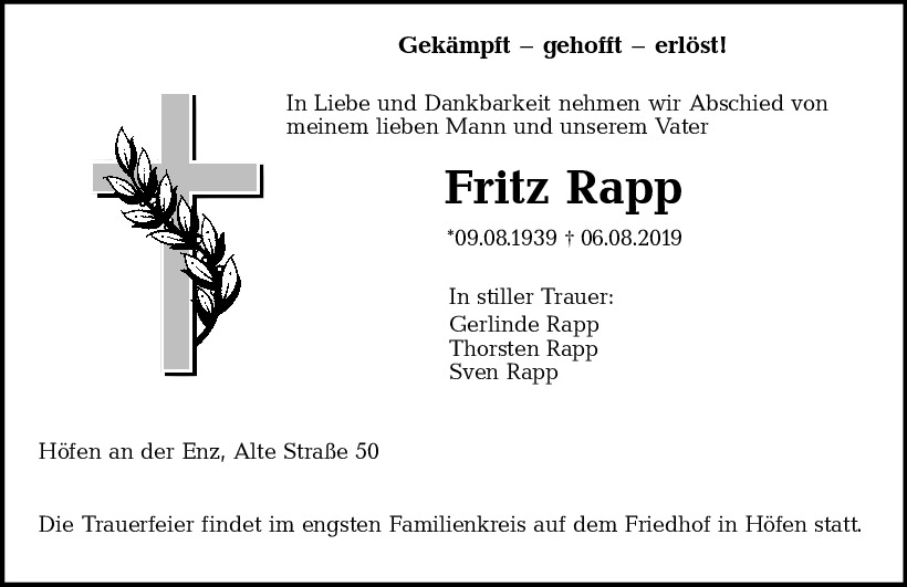 †06.08.2019, Ruhestätte: Friedhof Höfen an der Enz