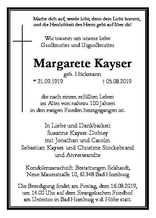 †05.08.2019, Ruhestätte: Ev. Friedhof, Bad Homburg