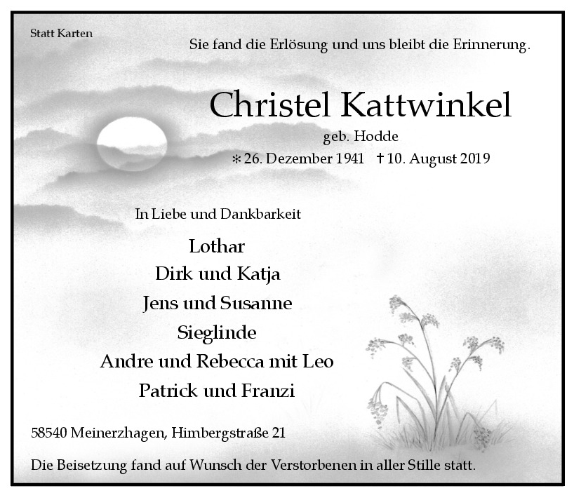 wir wünschen Ihnen von Herzen viel Kraft, dass Sie Menschen um sich haben, die Ihnen in dieser schweren Zeit beistehen und Halt geben. Zusätzlich können Sie auf dieser Gedenkseite Erinnerungen teilen und so das Andenken gemeinsam wachhalten.