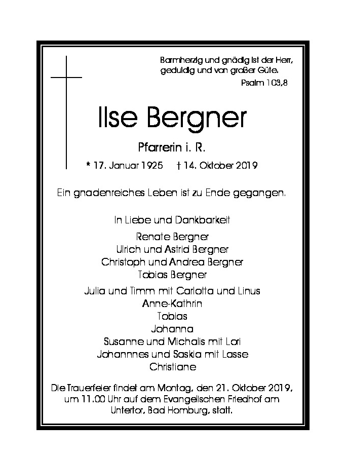 †14.10.2019, Ruhestätte: Ev. Friedhof, Bad Homburg