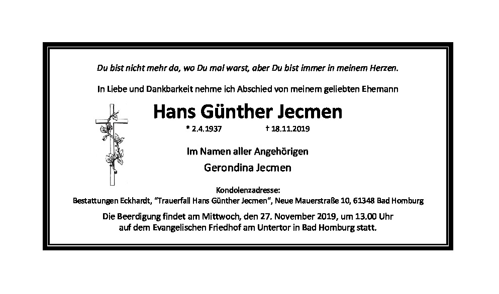 †18.11.2019, Ruhestätte: Ev. Friedhof, Bad Homburg