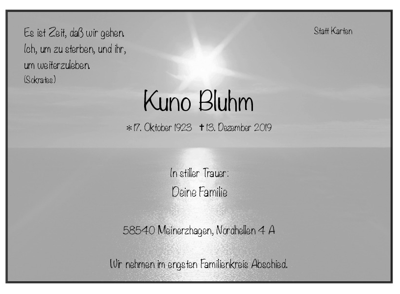 in diesen Tagen fühlen wir mit Ihnen und wünschen Ihnen von Herzen, dass Sie aus den glücklichen Erinnerungen Kraft schöpfen, um positiv in die Zukunft zu gehen. Diese Gedenkseite möge Ihnen dabei helfen, Ihre Trauer zu teilen und das Andenken gemeinsam wachzuhalten.