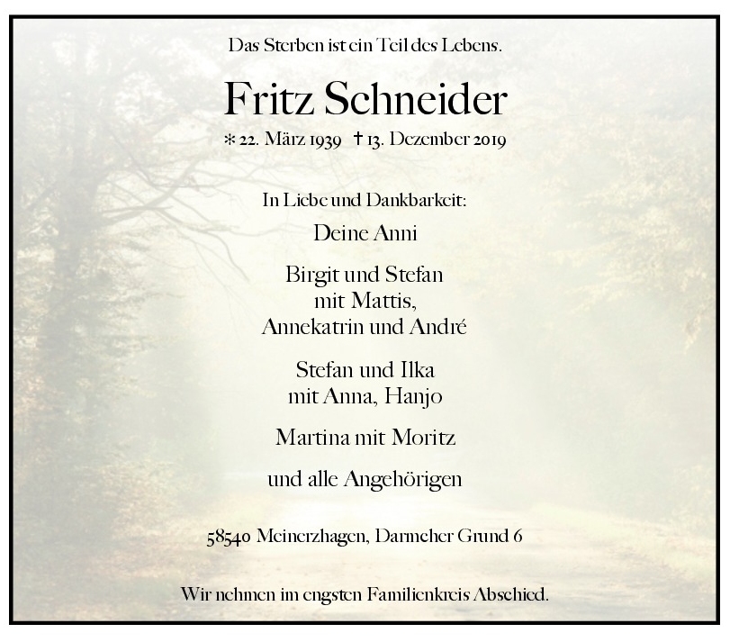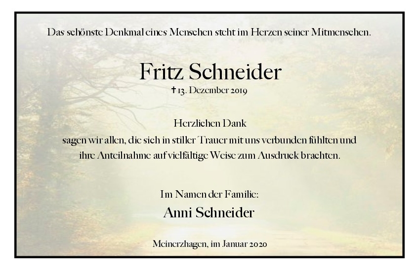 in diesen Tagen fühlen wir mit Ihnen und wünschen Ihnen von Herzen, dass Sie aus den glücklichen Erinnerungen Kraft schöpfen, um positiv in die Zukunft zu gehen. Diese Gedenkseite möge Ihnen dabei helfen, Ihre Trauer zu teilen und das Andenken gemeinsam wachzuhalten.