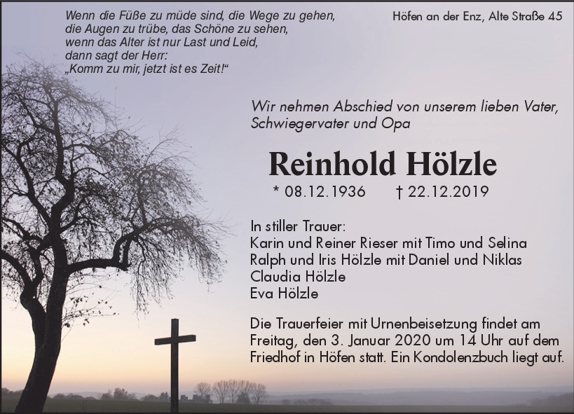 †22.12.2019, Ruhestätte: Friedhof Höfen an der Enz