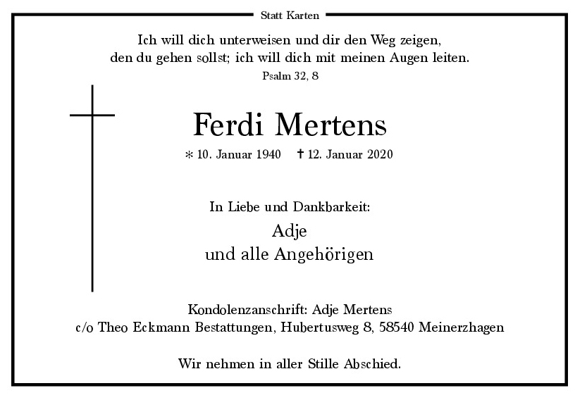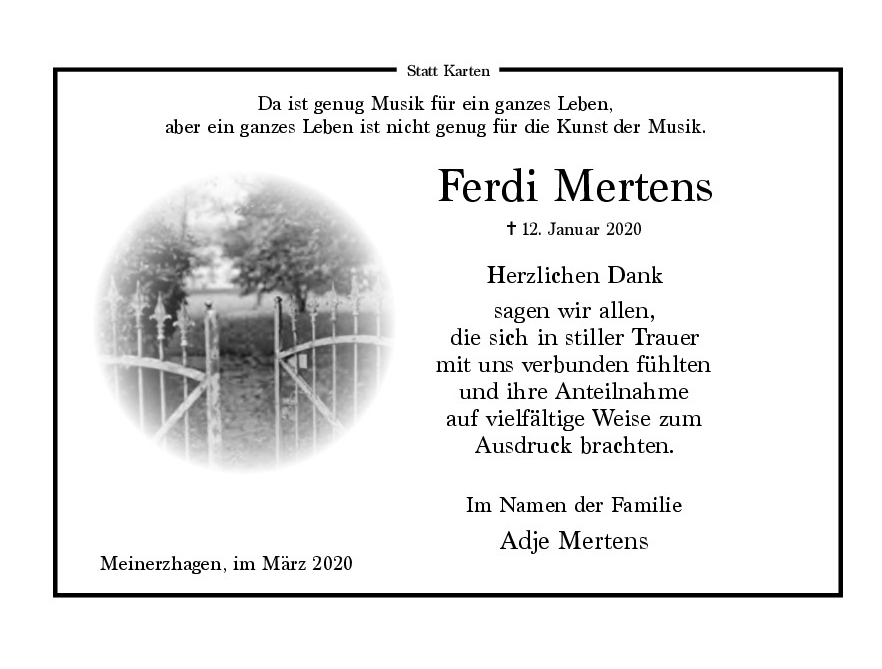 wir wünschen Ihnen von Herzen viel Kraft, dass Sie Menschen um sich haben, die Ihnen in dieser schweren Zeit beistehen und Halt geben. Zusätzlich können Sie auf dieser Gedenkseite Erinnerungen teilen und so das Andenken gemeinsam wachhalten.