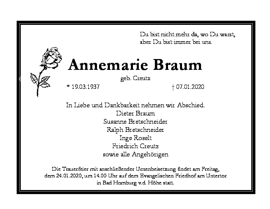 †07.01.2020, Ruhestätte: Ev. Friedhof, Bad Homburg