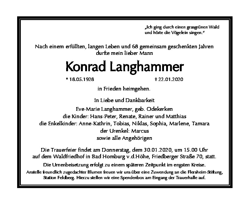 †22.01.2020, Ruhestätte: Waldfriedhof, Bad Homburg