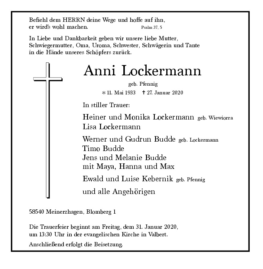 in diesen Tagen fühlen wir mit Ihnen und wünschen Ihnen von Herzen, dass Sie aus den glücklichen Erinnerungen Kraft schöpfen, um positiv in die Zukunft zu gehen. Diese Gedenkseite möge Ihnen dabei helfen, Ihre Trauer zu teilen und das Andenken gemeinsam wachzuhalten.
