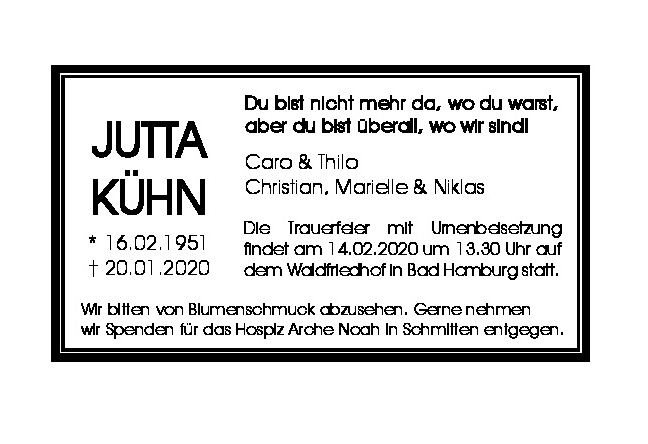 †20.01.2020, Ruhestätte: Waldfriedhof, Bad Homburg
