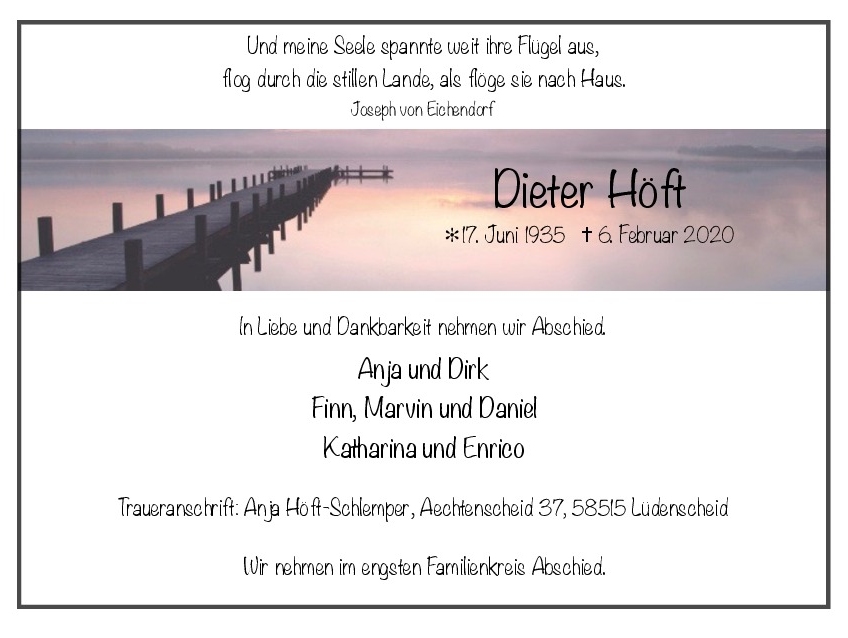 wir wünschen Ihnen von Herzen viel Kraft, dass Sie Menschen um sich haben, die Ihnen in dieser schweren Zeit beistehen und Halt geben. Zusätzlich können Sie auf dieser Gedenkseite Erinnerungen teilen und so das Andenken gemeinsam wachhalten.