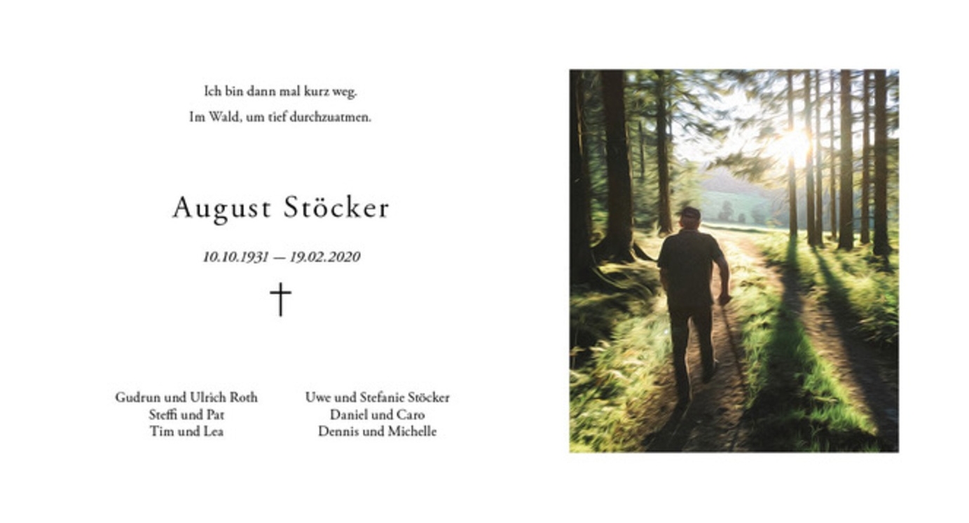 in diesen Tagen fühlen wir mit Ihnen und wünschen Ihnen von Herzen, dass Sie aus den glücklichen Erinnerungen Kraft schöpfen, um positiv in die Zukunft zu gehen.