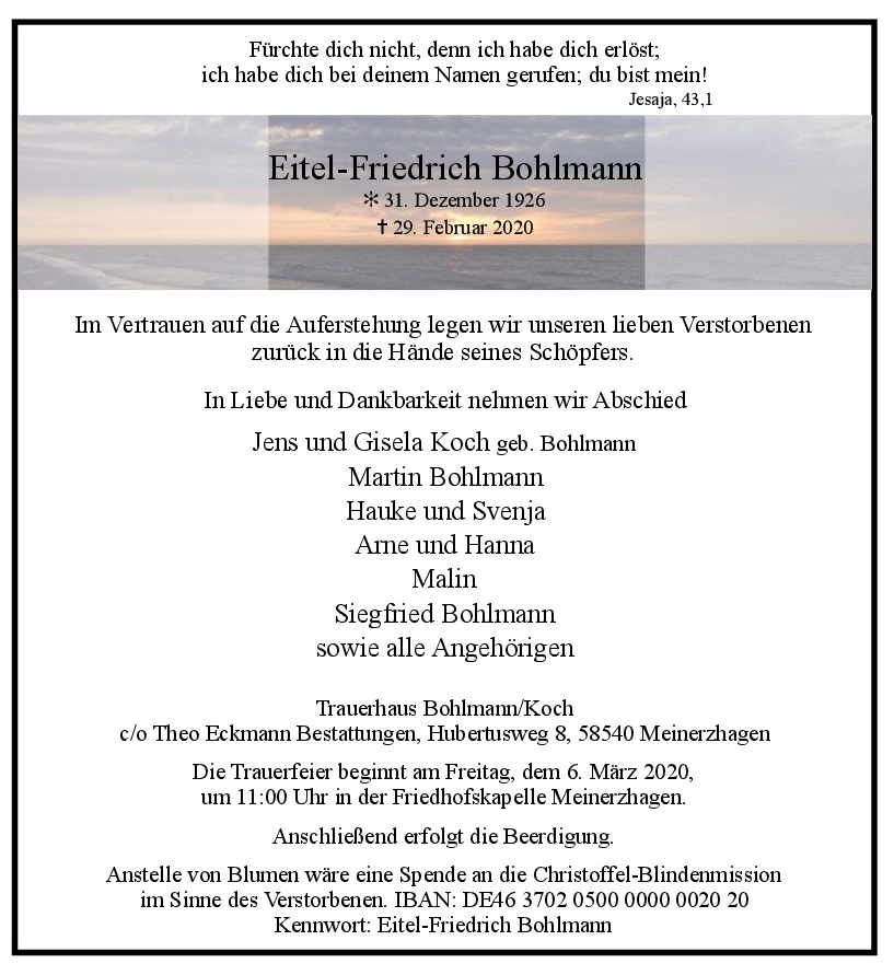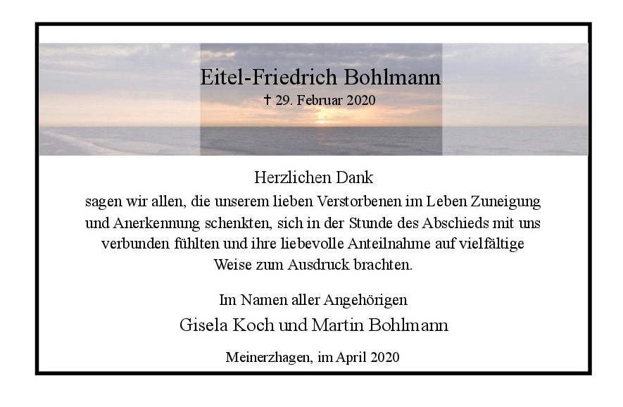 in diesen Tagen fühlen wir mit Ihnen und wünschen Ihnen von Herzen, dass Sie aus den glücklichen Erinnerungen Kraft schöpfen, um positiv in die Zukunft zu gehen. Diese Gedenkseite möge Ihnen dabei helfen, Ihre Trauer zu teilen und das Andenken gemeinsam wachzuhalten.