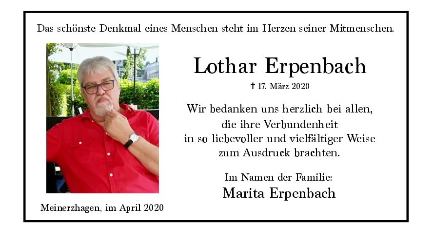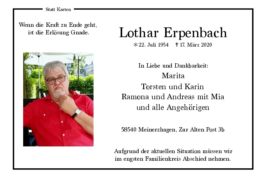 wir wünschen Ihnen von Herzen viel Kraft, dass Sie Menschen um sich haben, die Ihnen in dieser schweren Zeit beistehen und Halt geben. Zusätzlich können Sie auf dieser Gedenkseite Erinnerungen teilen und so das Andenken gemeinsam wachhalten.