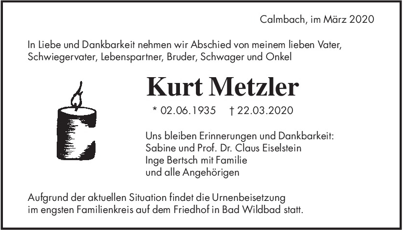 †22.03.2020, Ruhestätte: Waldfriedhof Bad Wildbad