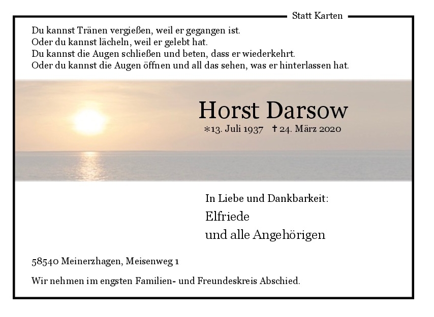in diesen Tagen fühlen wir mit Ihnen und wünschen Ihnen von Herzen, dass Sie aus den glücklichen Erinnerungen Kraft schöpfen, um positiv in die Zukunft zu gehen. Diese Gedenkseite möge Ihnen dabei helfen, Ihre Trauer zu teilen und das Andenken gemeinsam wachzuhalten.