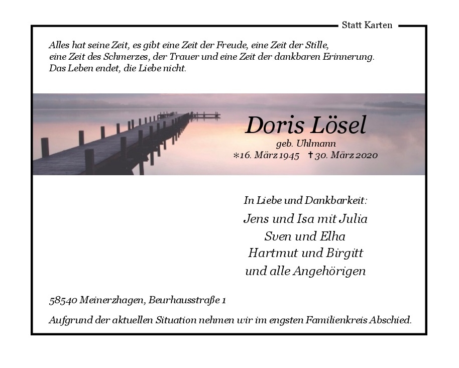 in diesen Tagen fühlen wir mit Ihnen und wünschen Ihnen von Herzen, dass Sie aus den glücklichen Erinnerungen Kraft schöpfen, um positiv in die Zukunft zu gehen. Diese Gedenkseite möge Ihnen dabei helfen, Ihre Trauer zu teilen und das Andenken gemeinsam wachzuhalten.
