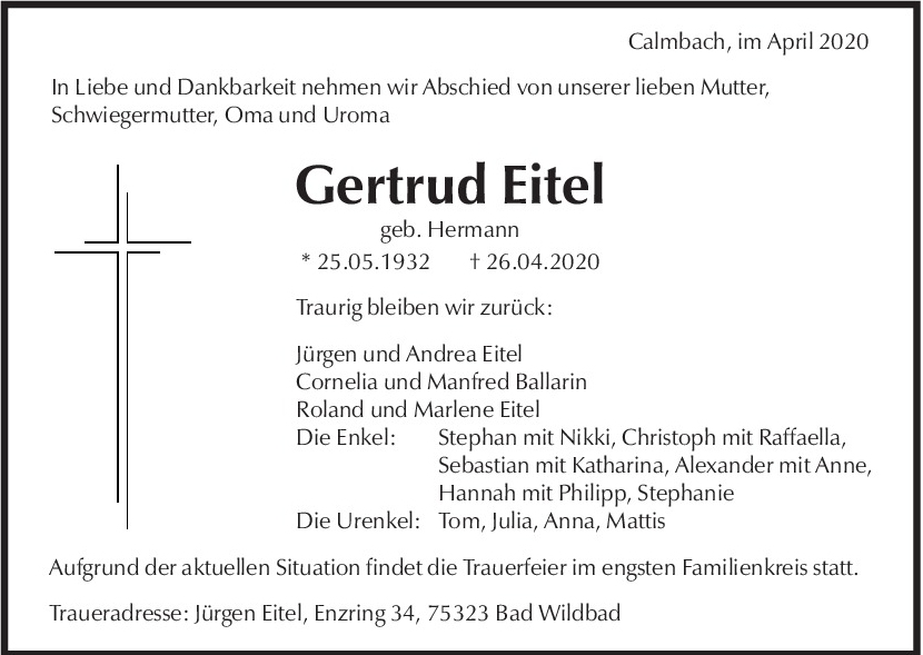 †26.04.2020, Ruhestätte: Waldfriedhof Bad Wildbad