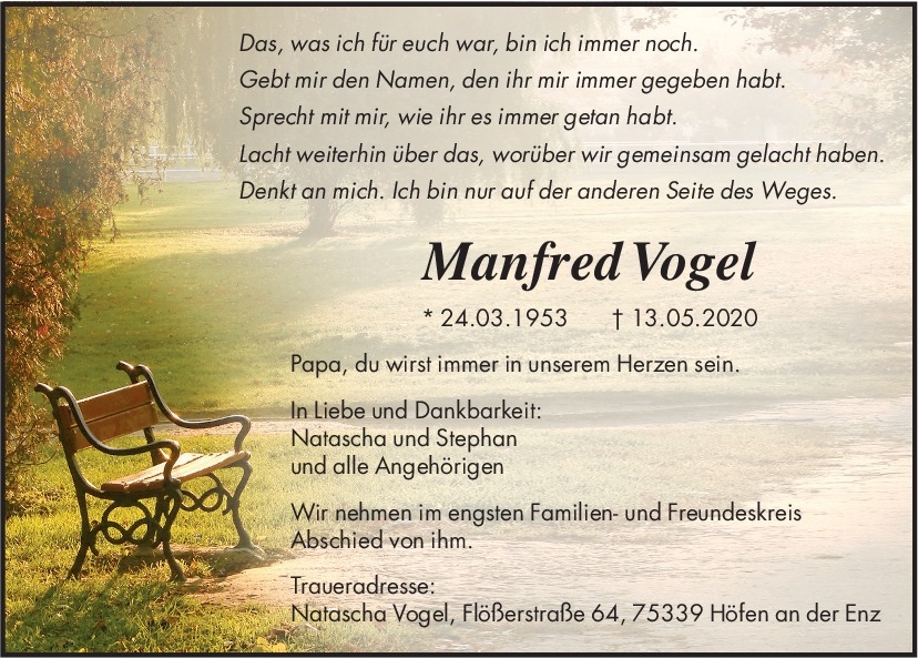 Lieber Papa, wenn auch viel zu wenig zu Dir gesagt, liebe ich Dich so sehr und Du hinterlässt eine so große Lücke in unserem Leben. Ich werde Dich mit so viel Liebe und unendlicher Dankbarkeit in meinem Herzen behalten. Dankeschön Papa, dass Du mir die tollste und liebste Schwester zu meiner Seite gegeben hast!!! Liebe Grüße an Oma und Opa und passt bitte auf uns auf, dass wir die richtigen Entscheidungen treffen und gesund bleiben. Ich liebe dich Papa!!! ❤❤❤