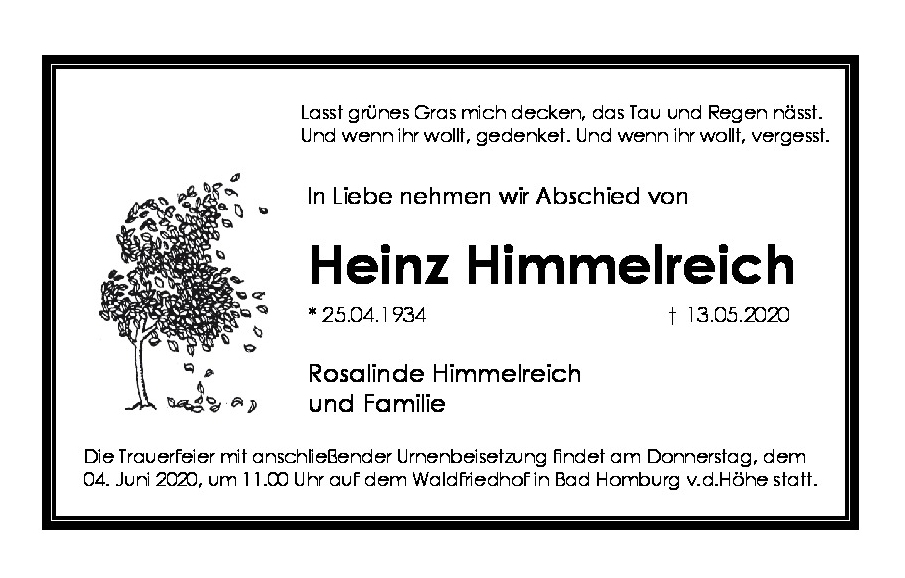 †13.05.2020, Ruhestätte: Waldfriedhof, Bad Homburg