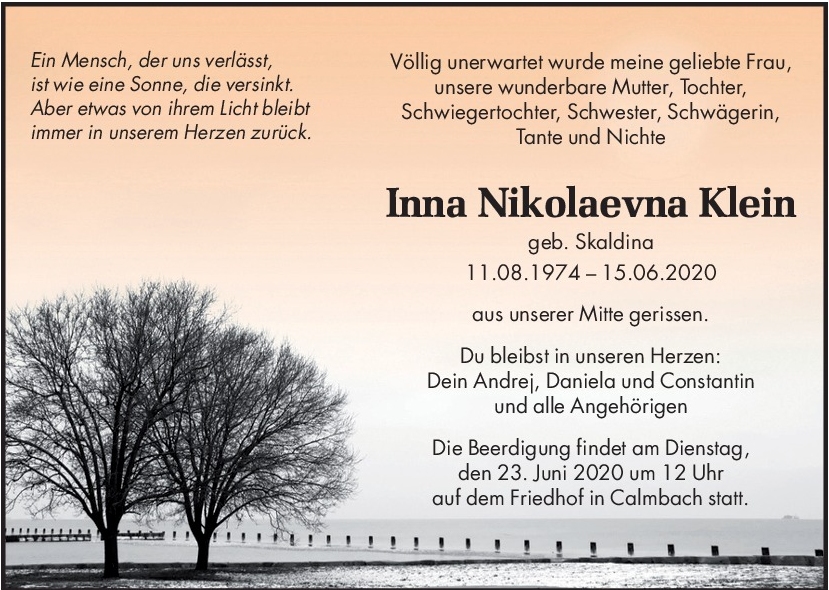 Eine Stimme, die vertraut war, schweigt. Ein Mensch, der immer da war, ist nicht mehr. Was bleibt sind dankbare Erinnerungen, die niemand nehmen kann. Für einen langen Moment stand die Erde für mich still. Völlig unfassbar, unwirklich, nicht zu begreifen. Auf einmal ist ALLES anders. Ich werde DICH vermissen " mein Schatz", dein Lachen, deine Menschlichkeit, deine Liebe, deine Ehrlichkeit....... Danke, dass ich DICH kennengelernt habe. Ich werde DICH in meinem Herzen immer bei mir haben. In stiller Anteilnahme Diana
