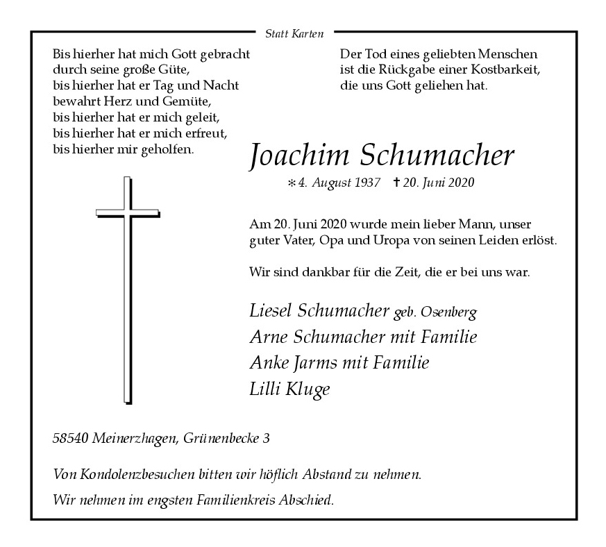 wir wünschen Ihnen von Herzen viel Kraft, dass Sie Menschen um sich haben, die Ihnen in dieser schweren Zeit beistehen und Halt geben. Zusätzlich können Sie auf dieser Gedenkseite Erinnerungen teilen und so das Andenken gemeinsam wachhalten.
