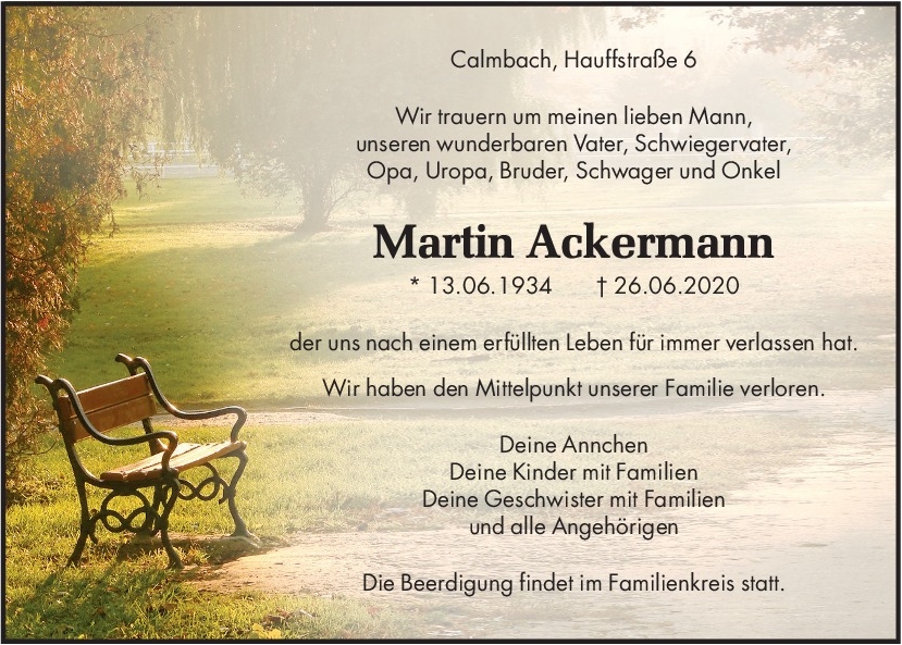 †26.06.2020, Ruhestätte: Waldfriedhof Bad Wildbad